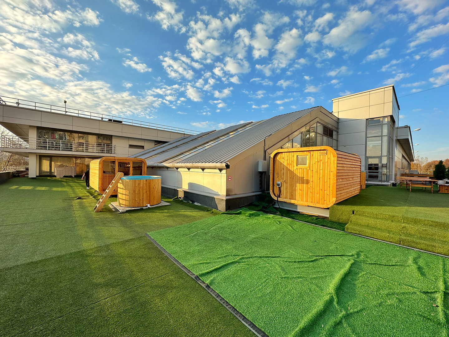 • Купель для 6-ых• Обшивка планкеном лиственницы• Дровяная печь • Боковой слив